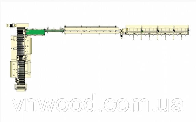 Потужна горизонтальна лінія зрощування деревини. Компактна конструкція, що складається з двох приводних ланцюгів, з'єднаних між собою подавальними планками. Спеціально для довгих пиломатеріалів. Максимальна продуктивність до 90 шт./хв.