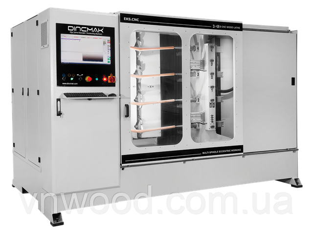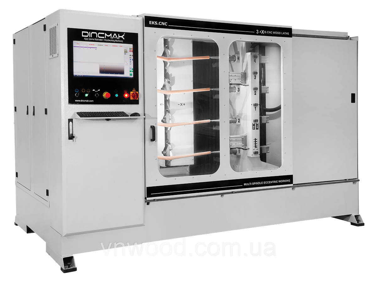 EKS.CNC — токарно-фрезерний верстат, який забезпечує виготовлення чотирьох продуктів за одну операцію. Він працює пневматично за тривимірним шаблоном. EKS.CNC пропонує вам найідеальніші рішення для виробництва ніжок для стільців і меблів, лопат, ручнок інструментів, прикладів, вішалок, спортивного інвентарю, музичних інструментів тощо.